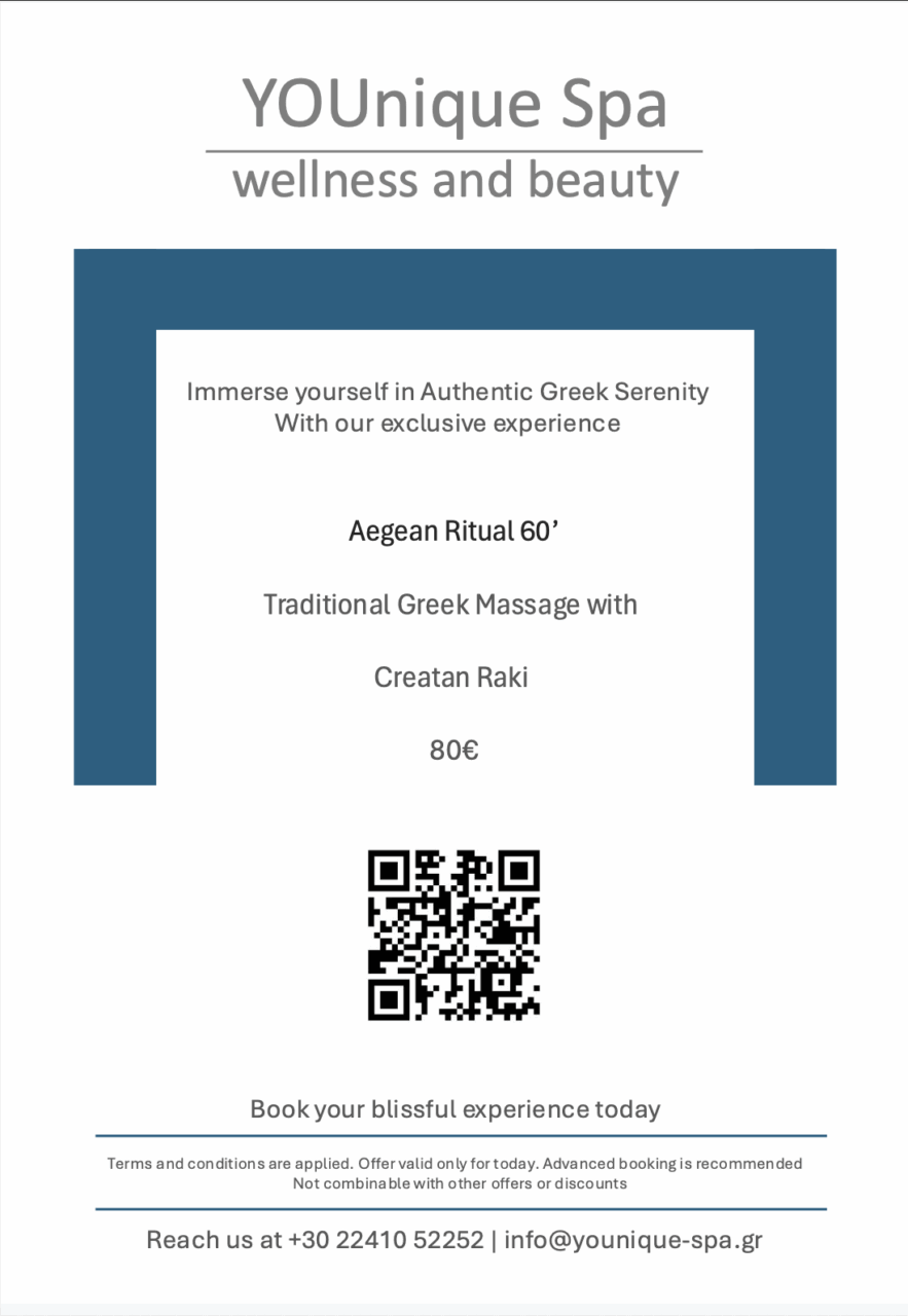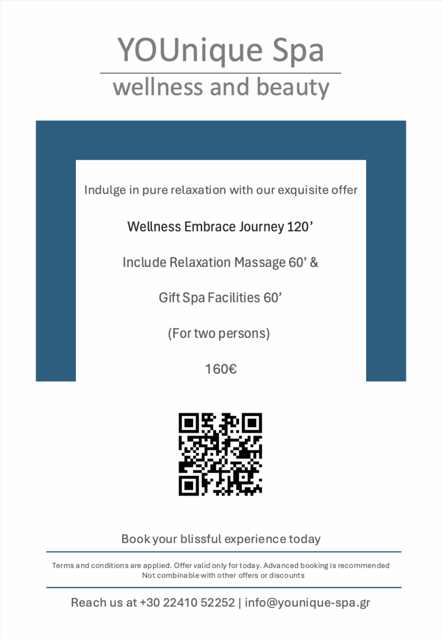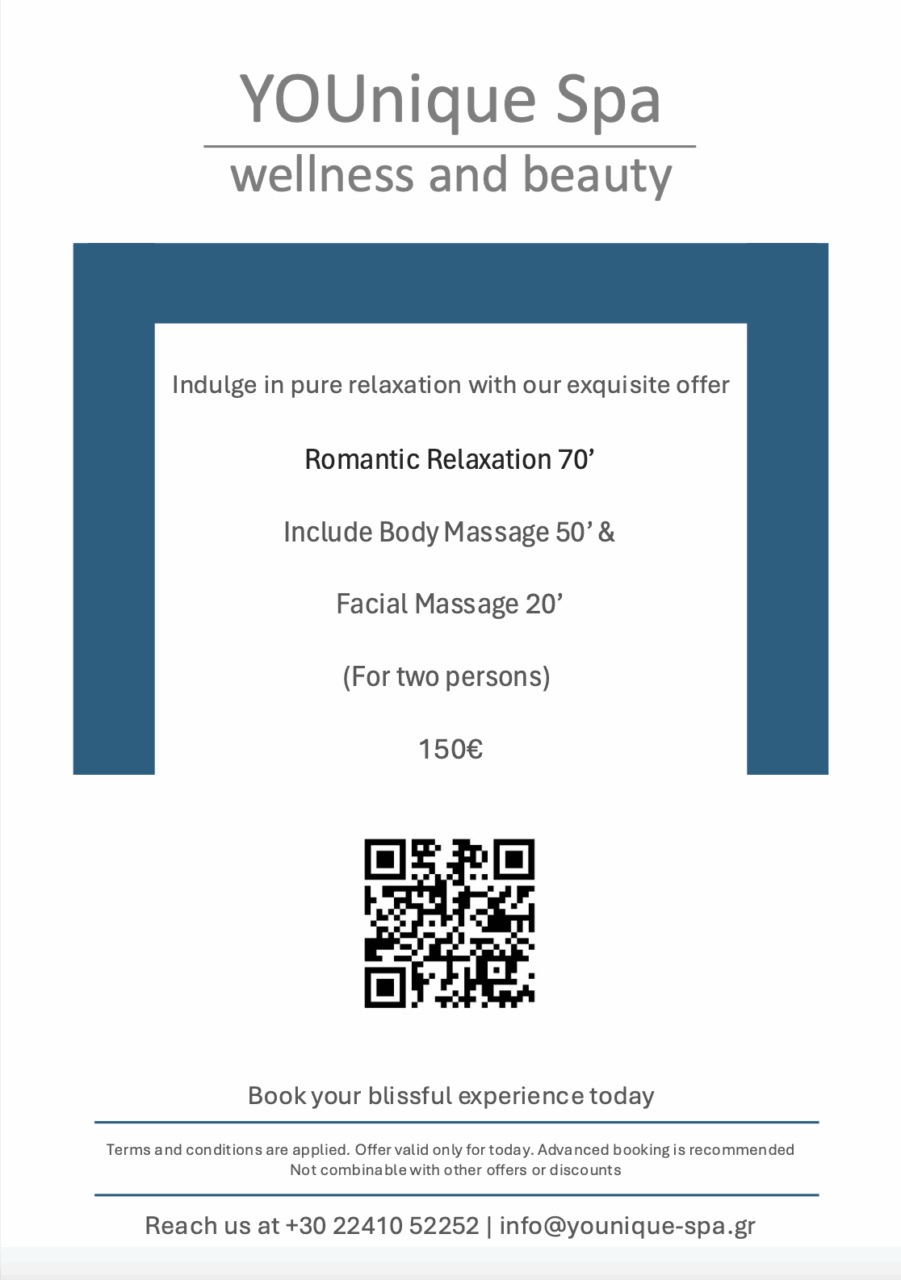 To Book the Special Offers please contact the Spa Reception at +30 22410 52252 Ext 612